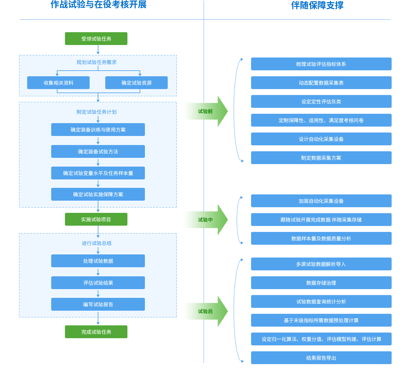 試驗前準備階段我司通過分解定量指標,梳理數據采集項,動態配置數據采集表,設計自動化采集設備;通過分解定性指標,制定定性評估灰類等級,設計相關定性問卷試題及根據灰類等級設計問卷答案,基于作戰試驗流程和考核科目抽取相關問卷試題定制形成調查問卷。
