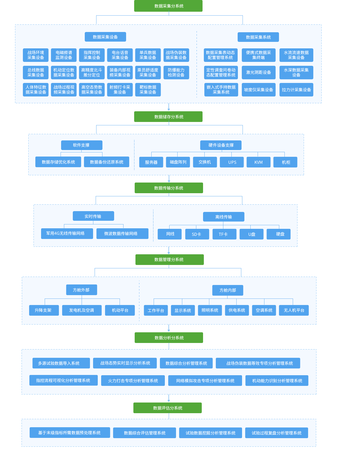 數據評估分系統主要包含基于末級指標所需數據預處理系統、數據綜合評估管理系統、試驗數據挖掘分析管理系統、試驗過程復盤分析管理系統等。能夠滿足裝備試驗評估指標體系可視化構建、歸一化算法綁定、權重分值設定、評估模型構建、試驗數據預處理以及評估計算等,支持生成裝備試驗評估報告并對評估結果進行多樣化分析以及對試驗數據進行深度挖掘、復盤分析管理。